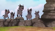 Janja i jego klan głodują na Złej Ziemi. Cheezi zauważa leżący niedaleko nich owoc baobabu i chce go zjeść, ale Janja jest zniesmaczony tym pomysłem i zamiast tego próbuje zjeść przelatującego motyla. Nie udaje się mu go złapać, a inne hieny zaczynają śmiać się z niego, bo motyl usiadł mu na uchu. Gdy Bunga wkracza na Złą Ziemię w celu odzyskania zgubionej "piłki", Janja zauważa go i szybko wysyła Cheezi i Chungu, by przynieśli mu ratela na obiad. Kiedy hieny próbują skrzywdzić Bungę, Kion powstrzymuje ich poprzez przypadkowe wykorzystanie Ryku Praojców, w wyniku czego obie hieny uciekają, zostawiając ratela w spokoju.