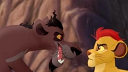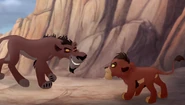 Gdy Jasiri zbliżyła się do wodopoju przejętego przez lwy, Nuka atakuje ją, mówiąc jej, by trzymała się z daleka od tego miejsca, lecz Kion odpiera jego atak, by chronić hienę, czym przyciąga uwagę młodszego brata Nuki, Kovu. Widząc swojego brata, Nuka oświadcza, że teraz mają przewagę liczebną nad Kionem, lecz Jasiri podchodzi do Kiona i odpowiada, że siły są wyrównane.